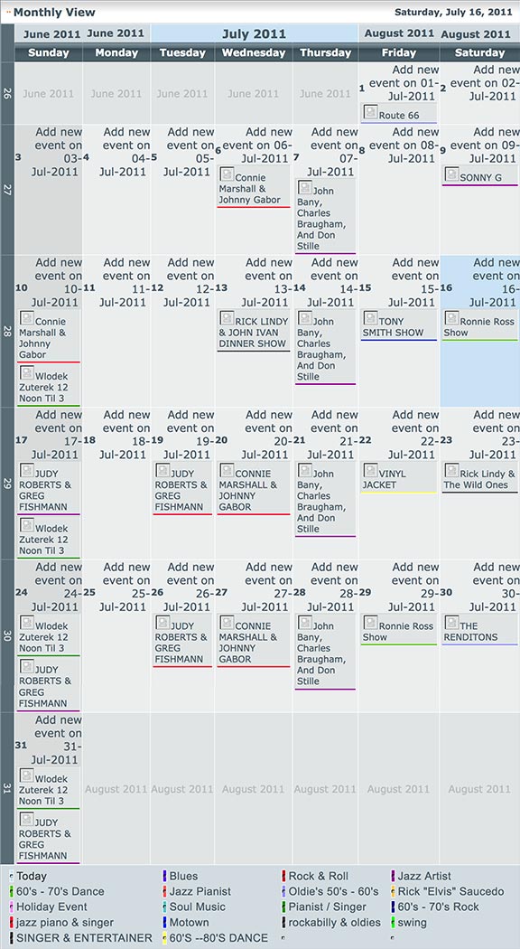 Cavern Beat, "Beatles Band" Bob Perna Persistance Orchestra Judy Roberts & Greg Fishman Buddy Charles Jerry Owings JAZZ JAM Way Cool Jeannie Lambert Duo |